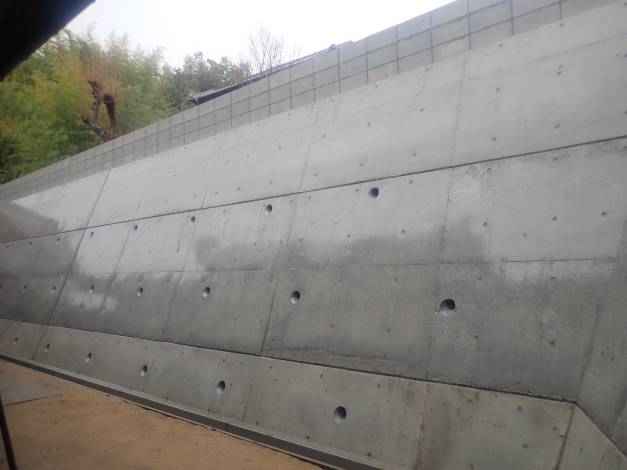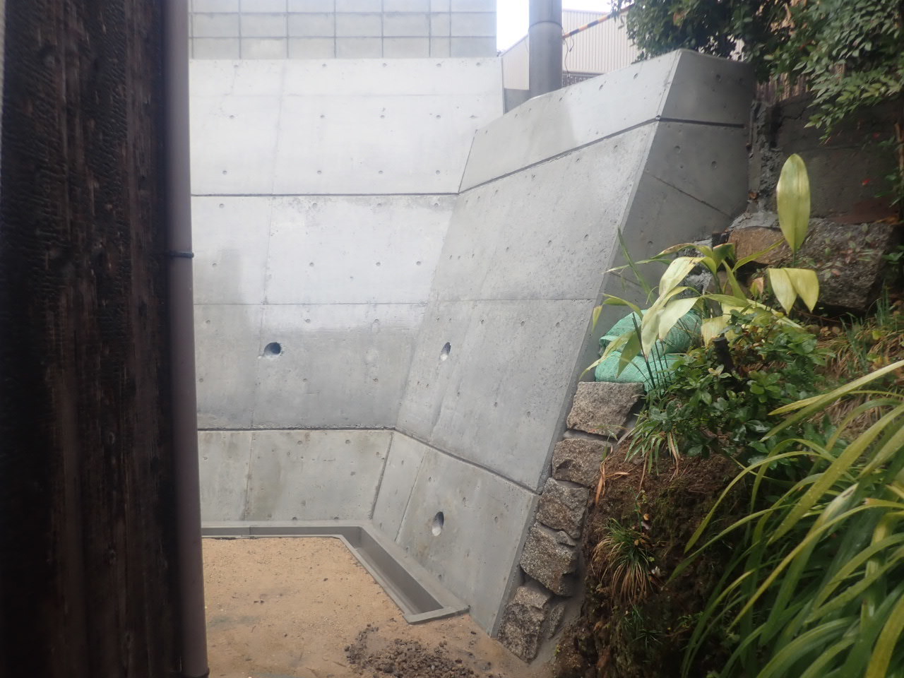 土砂崩れ箇所、擁壁補強工事