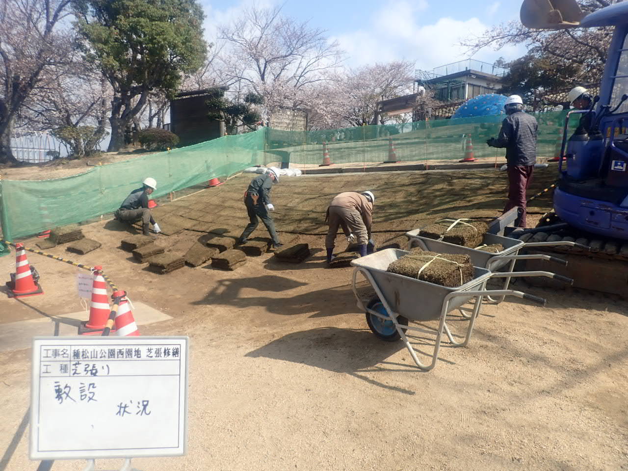 ここでは主に法面の土砂流出を防ぐ目的で、芝生敷設を行いました。